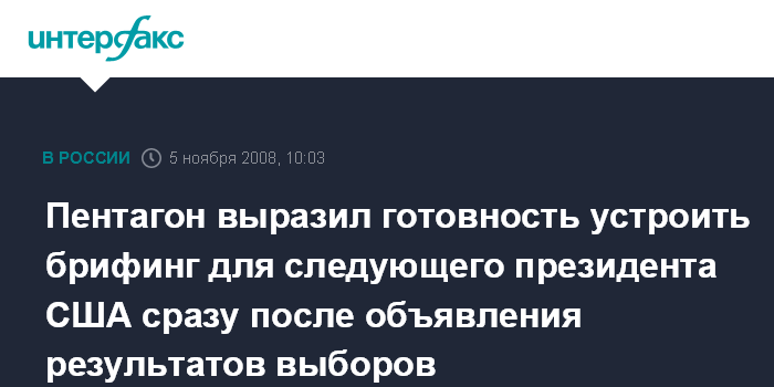 Москва. 5 ноября. INTERFAX.RU - Эксперты Пентагона готовы ознакомить команду следующего президента США с основными проблемами, стоящими перед американской армией, сразу после объявления результатов президентских выборов.