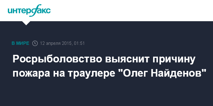 Москва. 12 апреля. INTERFAX.RU - Причины пожара на траулере "Олег Найденов" в Лас-Пальмасе выясняются, сообщили "Интерфаксу" в пресс-службе Росрыболовства.