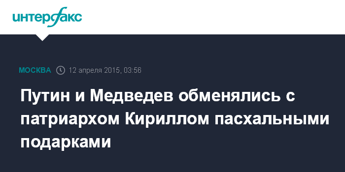 Путин и Медведев обменялись с патриархом Кириллом пасхальными подарками