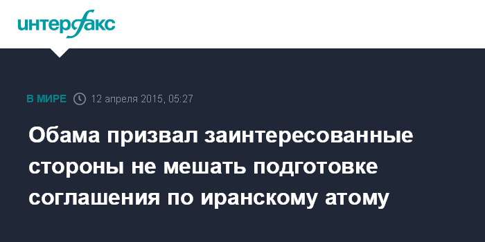 Москва. 12 апреля. INTERFAX.RU - Президент США Барак Обама считает, что все заинтересованные стороны должны приложить усилия к достижению соглашения по иранской ядерной программе (ИЯП) и избегать действий и заявлений, которые могут подорвать процесс его подготовки.