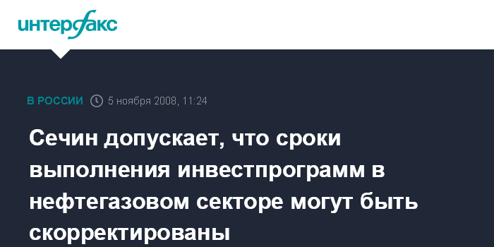 Сечин допускает, что сроки выполнения инвестпрограмм в нефтегазовом секторе могут быть скорректированы