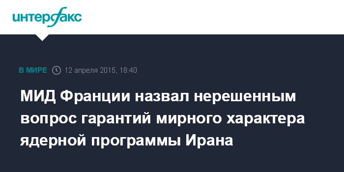 МИД Франции назвал нерешенным вопрос гарантий мирного характера ядерной программы Ирана