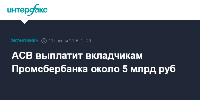 АСВ выплатит вкладчикам Промсбербанка около 5 млрд руб