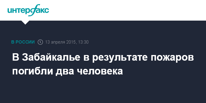Москва. 13 апреля. INTERFAX.RU - Власти Забайкалья проверяют сведения о двух погибших в результате пожаров в населенных пунктах региона, сообщила в понедельник журналистам замминистра здравоохранения края Ольга Дурова.