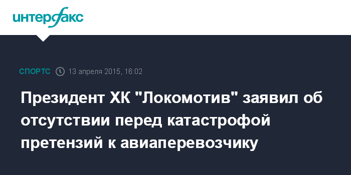 Президент ХК "Локомотив" заявил об отсутствии перед катастрофой претензий к авиаперевозчику
