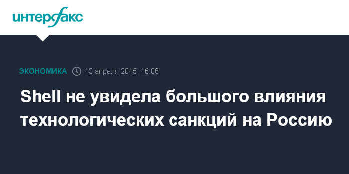 Москва. 13 апреля. INTERFAX.RU – Технологические санкции Запада в отношении России пока не имеют эффекта, считают в Shell.