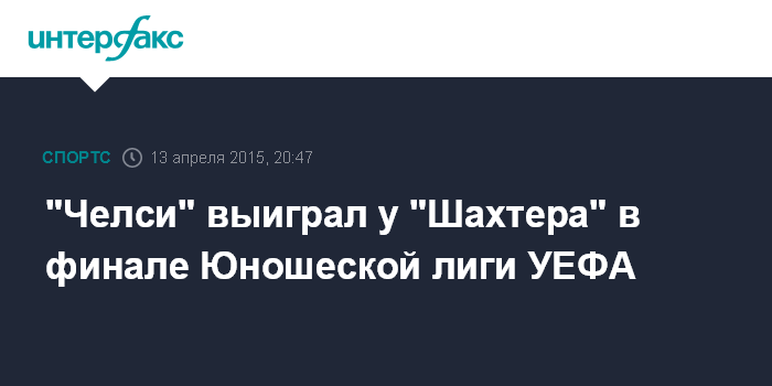 Москва. 13 апреля. INTERFAX.RU - Лондонский футбольный клуб "Челси" победил донецкий "Шахтер" в финале Юношеской лиги УЕФА.