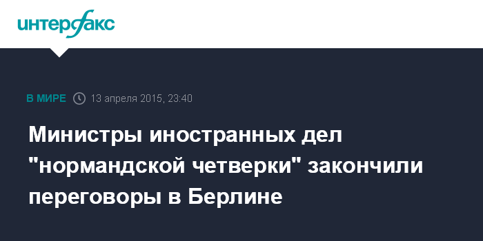 Москва. 13 апреля. INTERFAX.RU - Встреча глав МИД "нормандской четверки" завершилась в Берлине.