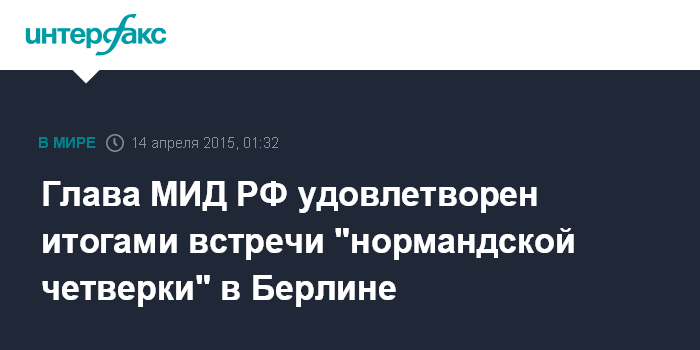 Москва. 14 апреля. INTERFAX.RU - Глава МИД РФ Сергей Лавров удовлетворен итогами встречи глав МИД "нормандского формата" по Украине.