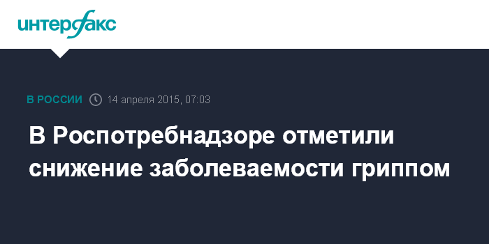 Попова сообщила, что нынешний уровень заболеваемости гриппом и ОРВИ свидетельствует о скором завершении эпидемического подъема сезона 2014-2015 годов.