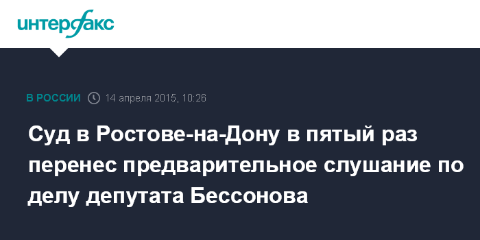 Кировский районный суд Ростова-на-Дону уже четырежды переносил дату предварительного слушания по делу Бессонова после письменного ходатайства депутата. 4 марта он был госпитализирован в одну из больниц Ростова-на-Дону с гипертоническим кризом.