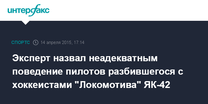 Эксперт назвал неадекватным поведение пилотов разбившегося с хоккеистами "Локомотива" ЯК-42