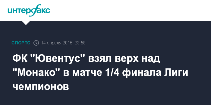 Москва. 14 апреля. INTERFAX.RU - Футболисты туринского "Ювентуса" добились победы над представляющем чемпионат Франции "Монако" в первом матче четвертьфинала Лиги чемпионов.