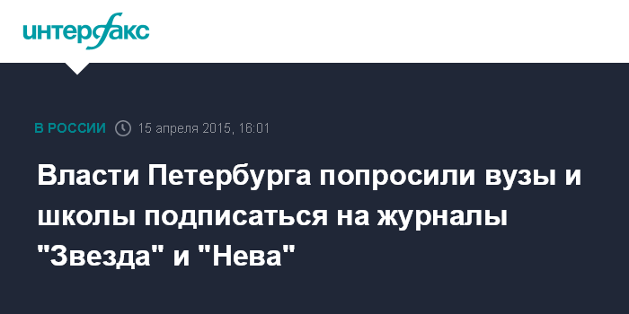 Власти Петербурга попросили вузы и школы подписаться на журналы "Звезда" и "Нева"