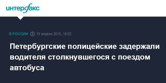 Москва. 15 апреля. INTERFAX.RU - Полицейские задержали водителя автобуса "Выборг-Приморск", в салоне которого погибли два человека после столкновения с поездом в Ленинградской области, сообщили "Интерфаксу" в ГУ МВД по северной столице в среду.