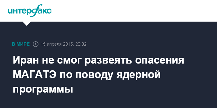 Москва. 15 апреля. INTERFAX.RU - Эксперты из Ирана на переговорах с МАГАТЭ не смогли развеять опасения относительно ядерной программы, сообщает агентство ISNA.