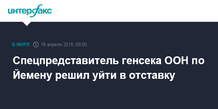 Москва. 16 апреля. INTERFAX.RU – Специальный представитель генсека ООН по Йемену Джамал Беномар покидает свой пост, говорится в заявлении пресс-службы всемирной организации. В нем отмечается, что Беномар выразил желание перейти на другую должность.