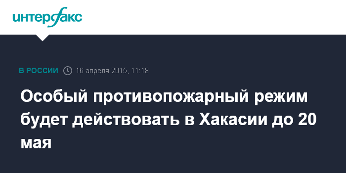 Особый противопожарный режим будет действовать в Хакасии до 20 мая