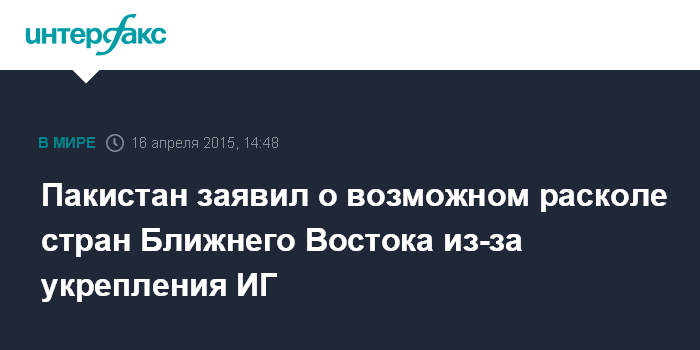 Пакистан заявил о возможном расколе стран Ближнего Востока из-за укрепления ИГ