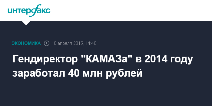 Гендиректор "КАМАЗа" в 2014 году заработал 40 млн рублей