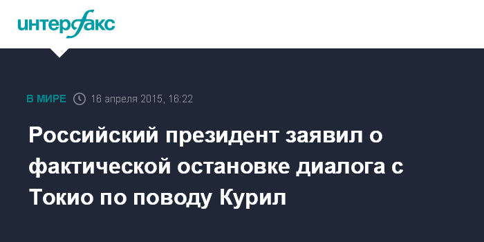 Российский президент заявил о фактической остановке диалога с Токио по поводу Курил