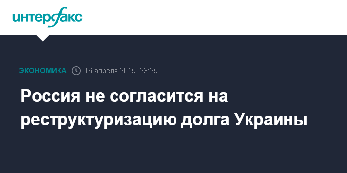 Россия не согласится на реструктуризацию долга Украины