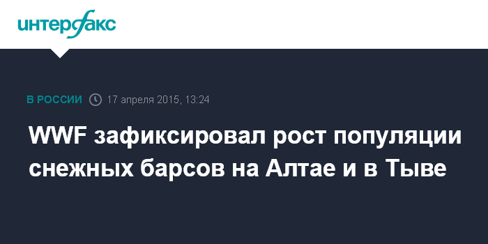 Москва. 17 апреля. INTERFAX.RU - На Алтае и в Тыве обнаружено пять новых снежных барсов, сообщает пресс-служба Всемирного фонда дикой природы (WWF) России.