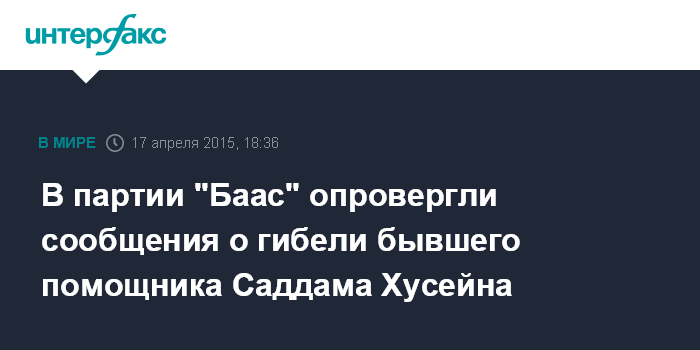 В партии "Баас" опровергли сообщения о гибели бывшего помощника Саддама Хусейна