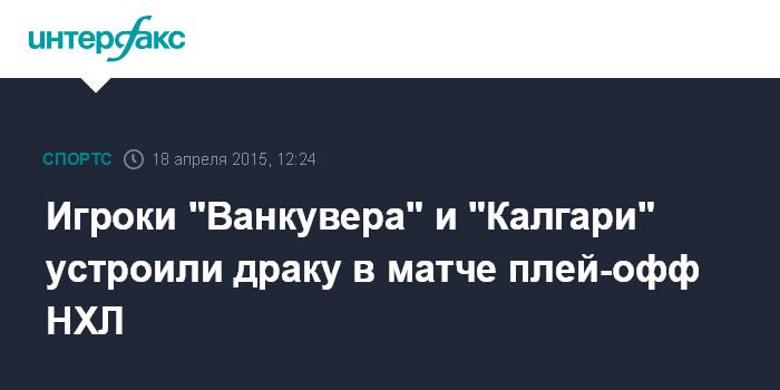 Москва. 18 апреля. INTERFAX.RU - Во втором матче 1/8 финала плей-офф НХЛ игроки "Калгари" и "Ванкувера" устроили массовую драку.