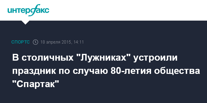 Москва. 18 апреля. INTERFAX.RU - Праздник, посвященный 80-летию со дня образования физкультурно-спортивного общества "Спартак", проходит в субботу в Москве в "Лужниках".