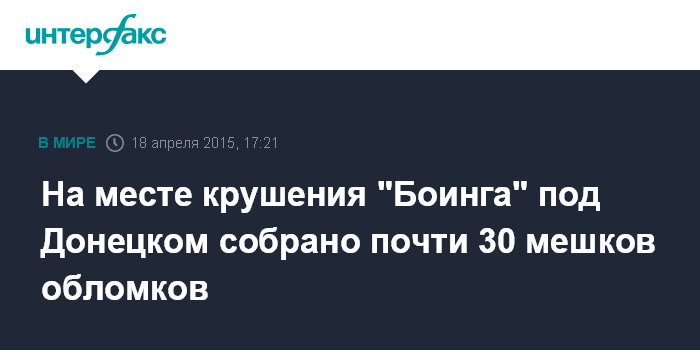 На месте крушения "Боинга" под Донецком собрано почти 30 мешков обломков