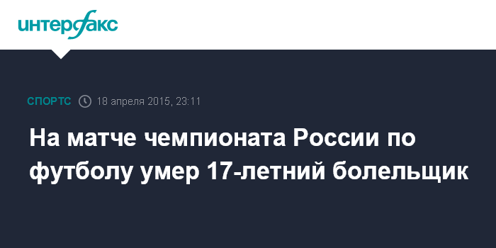 На матче чемпионата России по футболу умер 17-летний болельщик