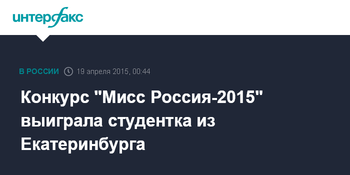 Москва. 19 апреля. INTERFAX.RU - В национальном конкурсе "Мисс Россия-2015" победила студентка Уральского федерального университета София Никитчук.