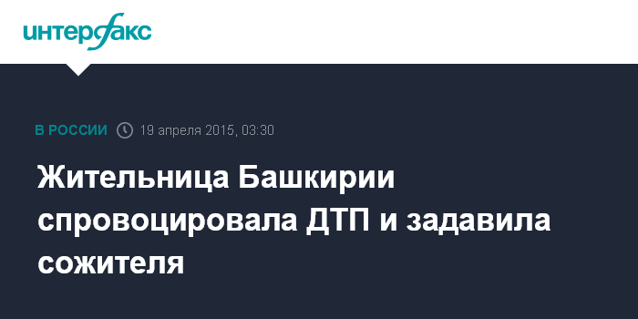 Москва. 19 апреля. INTERFAX.RU - Жительница Нефтекамска (Башкирия) после конфликта задавила своего сожителя автомобилем, сообщается на сайте СКР в субботу.