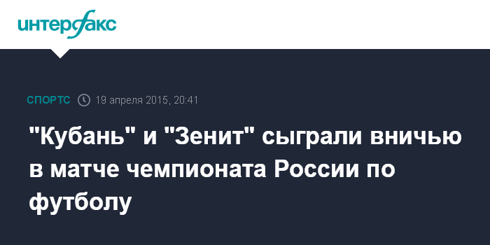 Москва. 19 апреля. INTERFAX.RU - Футболисты краснодарской "Кубани" на своем поле сыграли вничью с "Зенитом" в воскресном матче 24-го тура чемпионата России - 0:0.