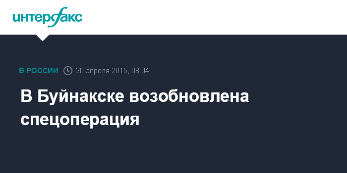 Москва. 20 апреля. INTERFAX.RU - Правоохранительные органы приступили к завершающей части спецоперации в Буйнакске, сообщил "Интерфаксу-Юг" источник в силовых структурах Дагестана в понедельник.