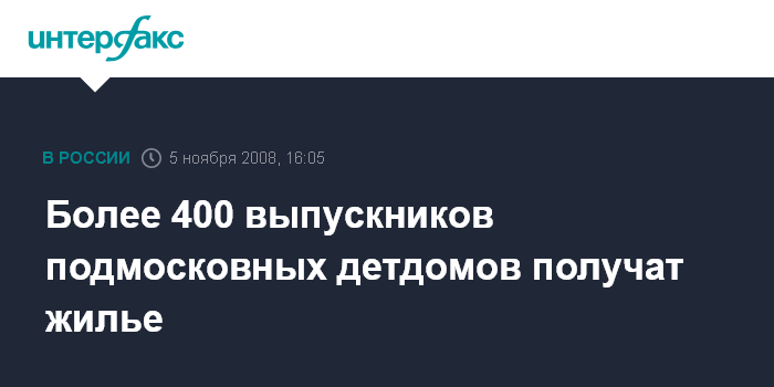 Москва. 5 ноября. INTERFAX.RU - В этом году собственное жилье получат 434 выпускника подмосковных детских домов, сообщила "Интерфаксу" министр образования Московской области Лидия Антонова в среду.