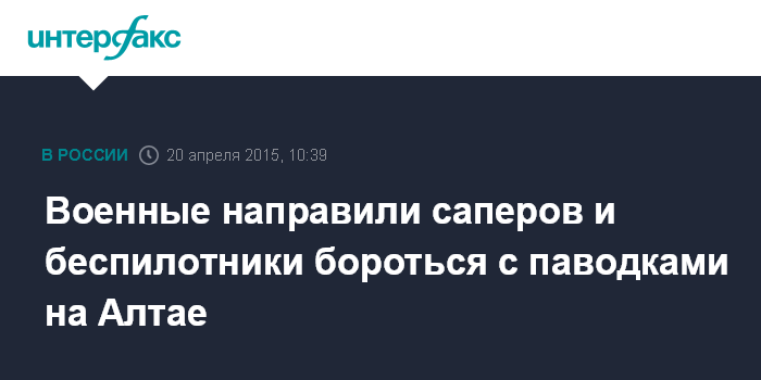 Москва. 20 апреля. INTERFAX.RU - Центральный военный округ (ЦВО) направил подразделения саперов и расчеты беспилотных летательных аппаратов (БЛА) для борьбы с паводками в Алтайском крае.
