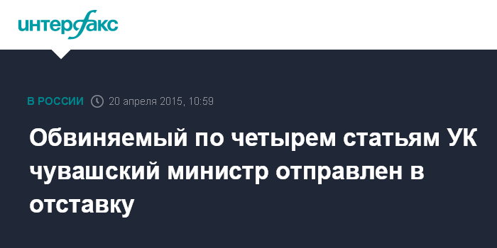 Обвиняемый по четырем статьям УК чувашский министр отправлен в отставку