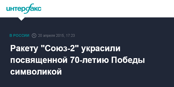 Ракету "Союз-2" украсили посвященной 70-летию Победы символикой