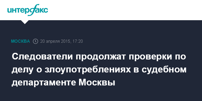 Москва. 20 апреля. INTERFAX.RU - Следственные органы проводят масштабную проверку деятельности столичного судебного департамента, изучается многочисленная документация, сообщил "Интерфаксу" в понедельник источник, знакомый с ситуацией.
