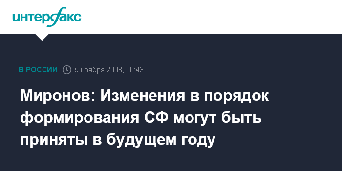 Миронов: Изменения в порядок формирования СФ могут быть приняты в будущем году