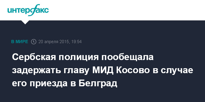 Сербская полиция пообещала задержать главу МИД Косово в случае его приезда в Белград