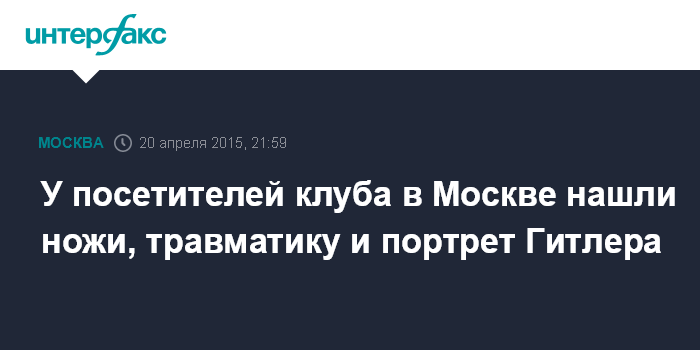 У посетителей клуба в Москве нашли ножи, травматику и портрет Гитлера