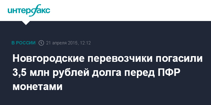 Москва. 21 апреля. INTERFAX.RU - ОАО "Автобусный парк" в Великом Новгороде выплатило монетами долг Пенсионному фонду РФ (ПФР) в размере 3,5 млн рублей, сообщило во вторник управление ФССП по Новгородской области (УФССП).