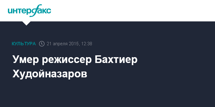 Москва. 21 апреля. INTERFAX.RU - Российский кинорежиссер Бахтиер Худойназаров скончался в Германии на 50-м году жизни, сообщили "Интерфаксу" друзья режиссера.