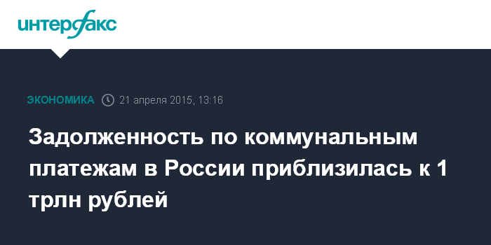Задолженность по коммунальным платежам в России приблизилась к 1 трлн рублей