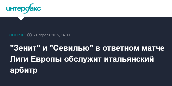 Москва. 21 апреля. INTERFAX.RU - Итальянский арбитр Никола Риццоли будет работать на ответном матче 1/4 финала Лиги Европы между петербургским "Зенитом" и испанской "Севильей", сообщает пресс-служба УЕФА.