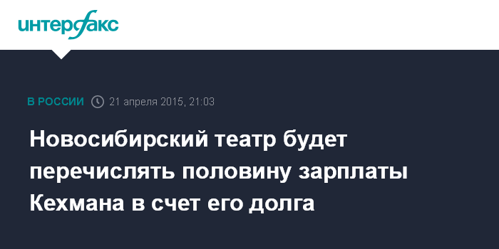 Москва. 21 апреля. INTERFAX.RU - Новый директор Новосибирского театра оперы и балета (НГАТОиБ) Владимир Кехман будет перечислять половину своей зарплаты в этом учреждении в счет погашения долгов.