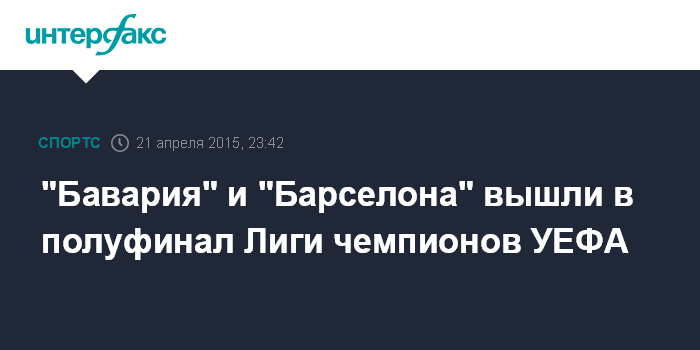 Москва. 21 апреля. INTERFAX.RU - "Бавария" и "Барселона" победили своих соперников в ответных четвертьфинальных матчах Лиги чемпионов УЕФА и стали первыми полуфиналистами.